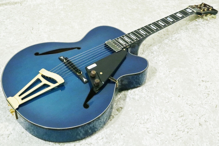 フル・アコースティック・ギターです。ミニ・ハムバッカーが、フローティング状態で付いています。ボディのサイズは16インチです。ちょっとジョニー・スミス風な感じの外観ですね。【重量:2.8kg】