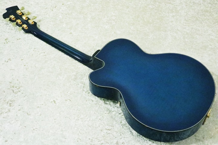 サイドとバックは硬いメイプルでガチっと固めて、トップのスプルース材を振動させるような木材構成で、フローティング・ピックアップと方向性があっていると思います。フルアコ・モデルは音の太さや深みが特徴ですが、より太く深い音色が得られるような仕様のギターに仕上がっています。
