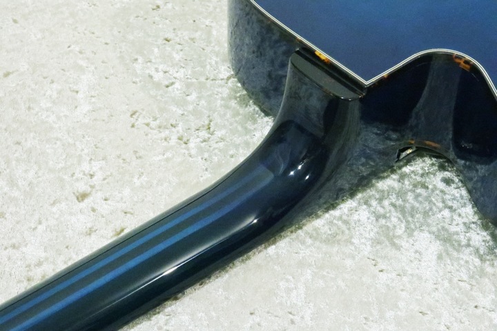 ギターの外周全体を囲むべっ甲柄の装飾類が美しく、空気感のあるふくよか音色の、上品で上質なギターです。こういうギターを弾きこなせるとかっこいいですよね。
