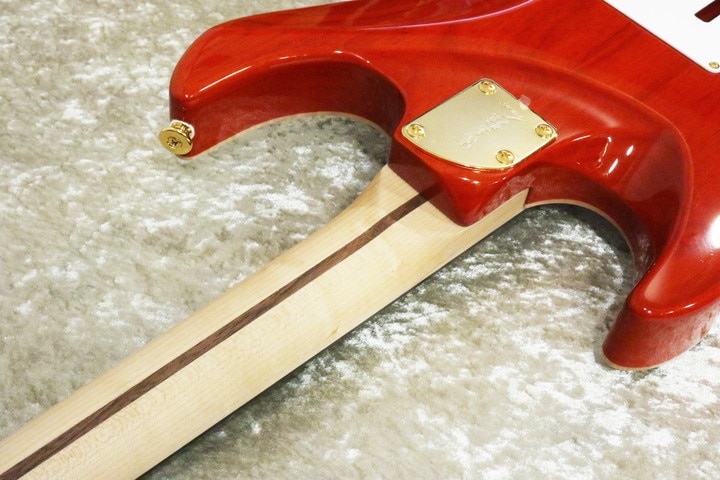 重さのあるブリッジ・ユニットが、音色や弾いた感じのパリっと感に、もっとも影響していると思います。ネック・ジョイント部のボディ木部が薄いなど、より高い演奏性を念頭に研ぎ澄まされたギターです。