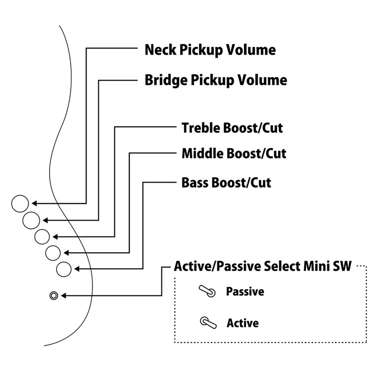 ★企画時に拘った大きなポイントは2つで、その内の1つがプリアンプを搭載していることです。通常のNJBと比較して、かなり幅広い音色の加工を楽器本体の手元で行えてしまいます。