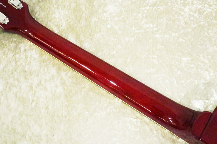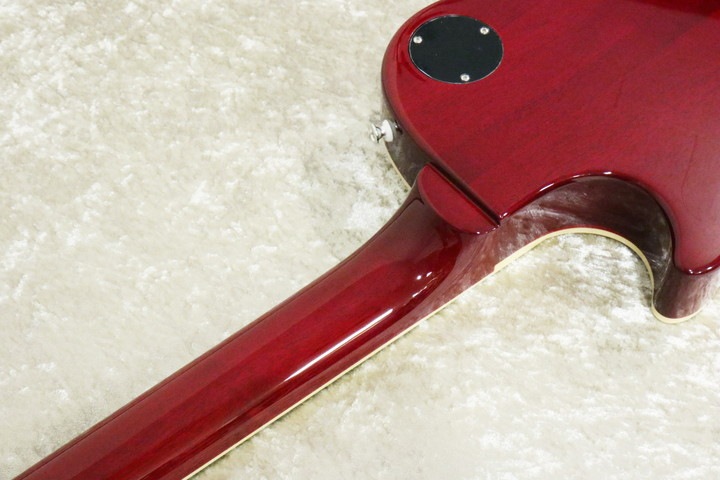 ■ボディ・バックのマホガニーがくり抜かれた、チェンバー構造になっています。セミアコやホロウ系というよりは、空洞のない軽いギターの方に近い鳴り方のように感じます。