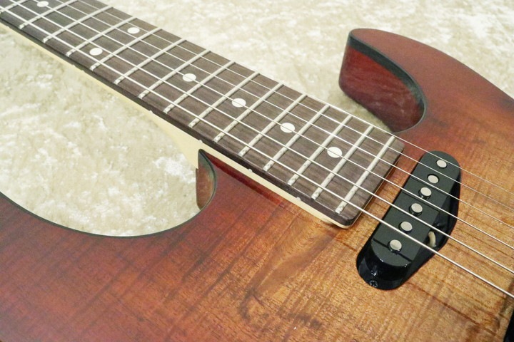 ピックアップはダンカン製品です。深く甘いフロントの音と、カラっと乾いて抜けの良いリアの音が対照的で使い分けやすく、色んなジャンルの音楽に対応できます。