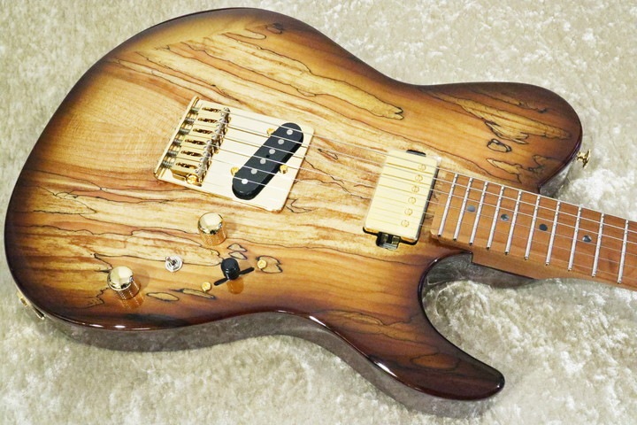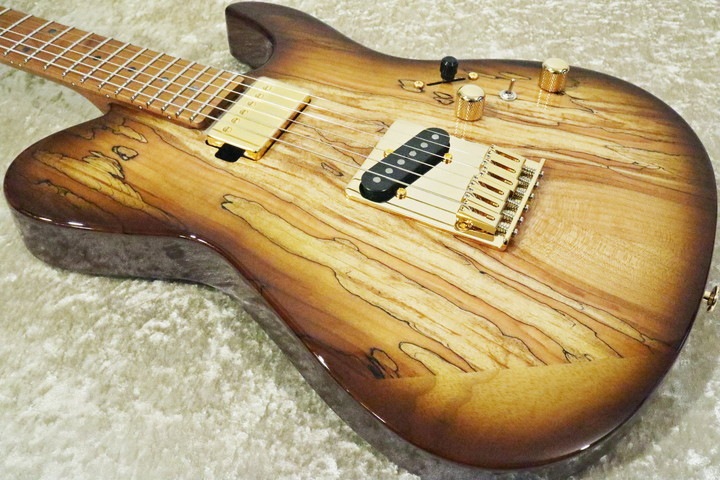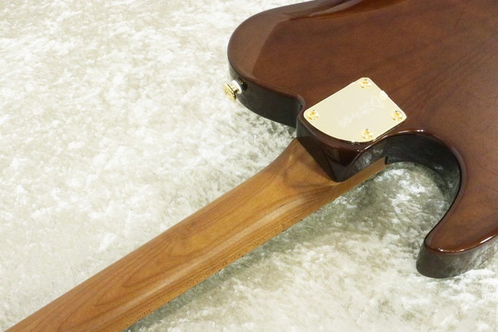 ●ローステッド・メイプルは、近年は割と一般的化しつつある、加熱処理されたメイプル材です。ちょっと焦げたような色をしていますね。木材の安定性が高まるとされており、ネックに使われることが多いですね。