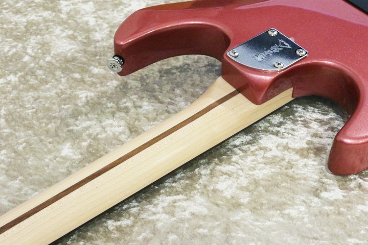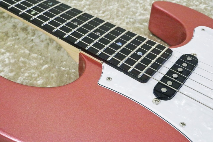 ●ボディはメタリックの塗装ですが、中身はアッシュ材です。ストラト系で、アッシュ・ボディとローズウッド指板の組み合わせはあまり一般的ではありませんが、良い組み合わせです。