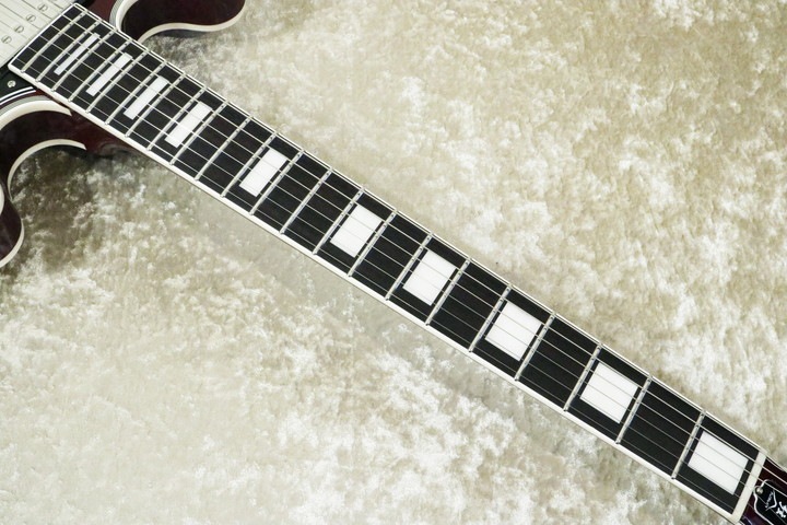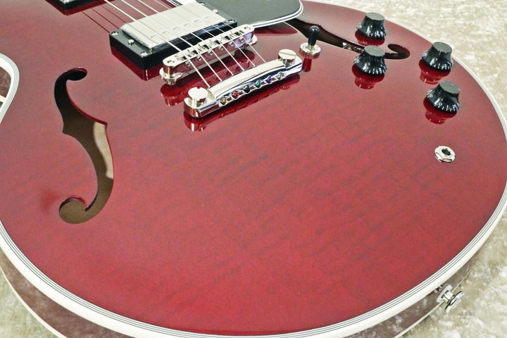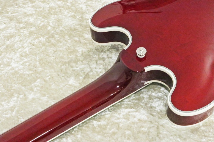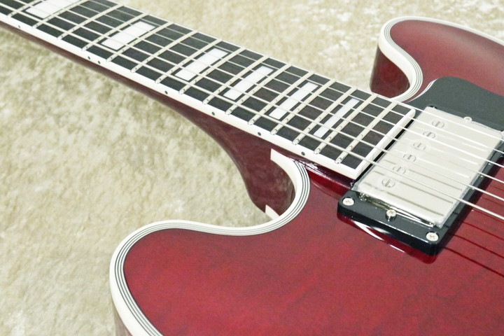 ●日本人の体格を考慮して設計された、少し小ぶりなセミアコです。軽量で扱いやすく、演奏時の音の振動がしっかり体に伝わる、“弾く気持ちよさ”を感じられるギターです。